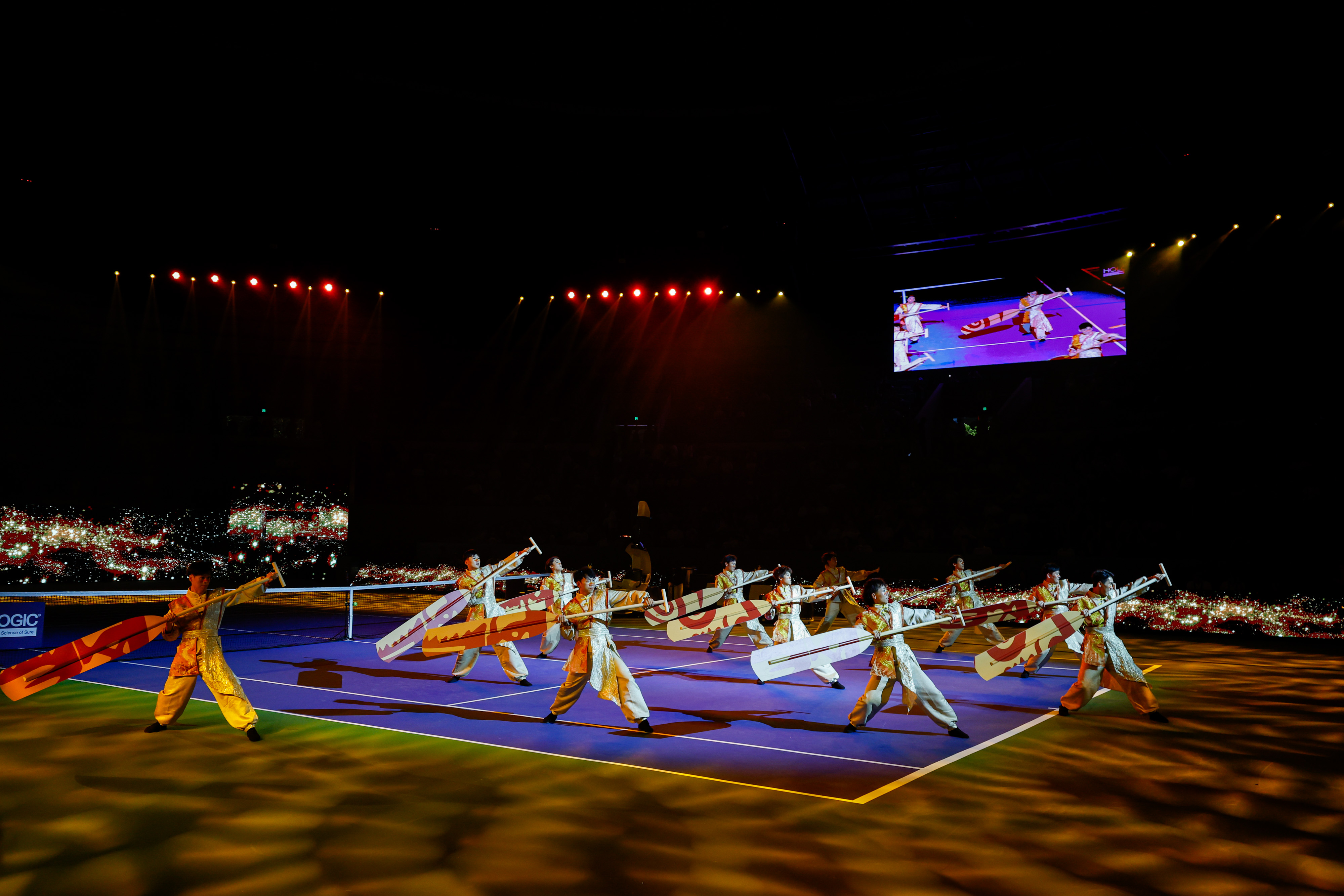 金秋十月,“茶花赛场”上灯光璀璨,世界网坛的目光再次汇聚于宁波。10月13日晚,2025奥克斯·宁波网球公开赛开幕式在宁波(鄞州)网球中心盛大举行,现场灯光与音乐交织,科技与艺术共融,开场表演《羽人竞渡》更是展现了宁波人团结拼搏、勇毅前行的精神。随后,在现场数千位观众的共同见证下,中心赛场的“茶花”屋顶徐徐开启,象征着这场世界级网球盛宴正式拉开序幕。
